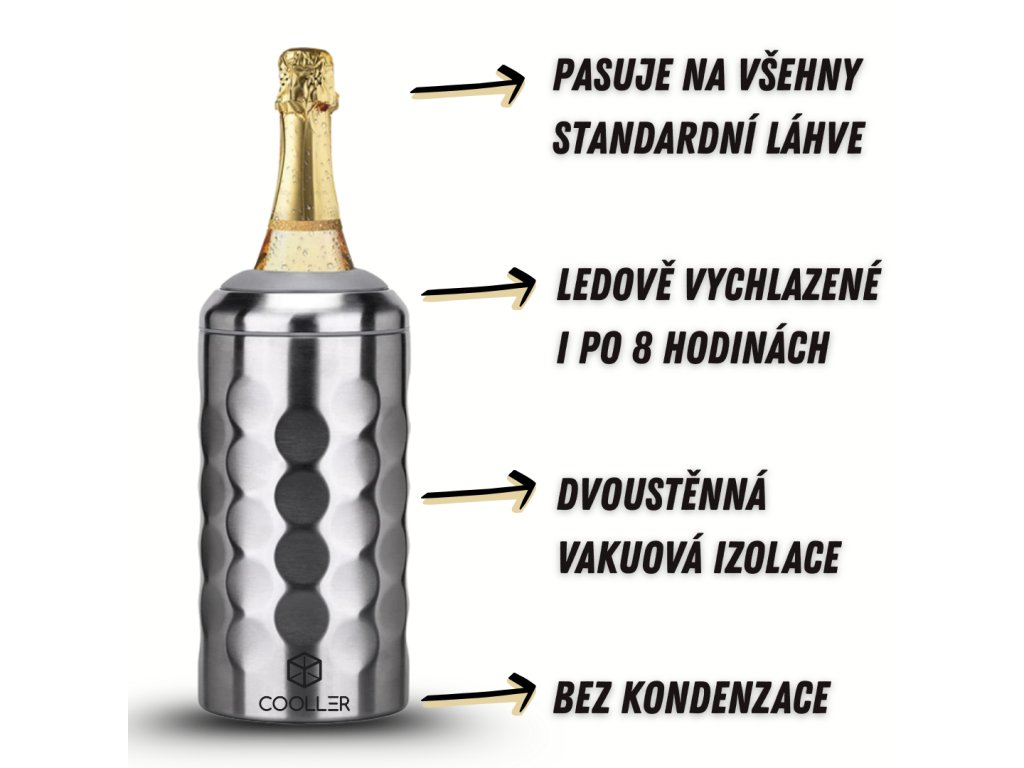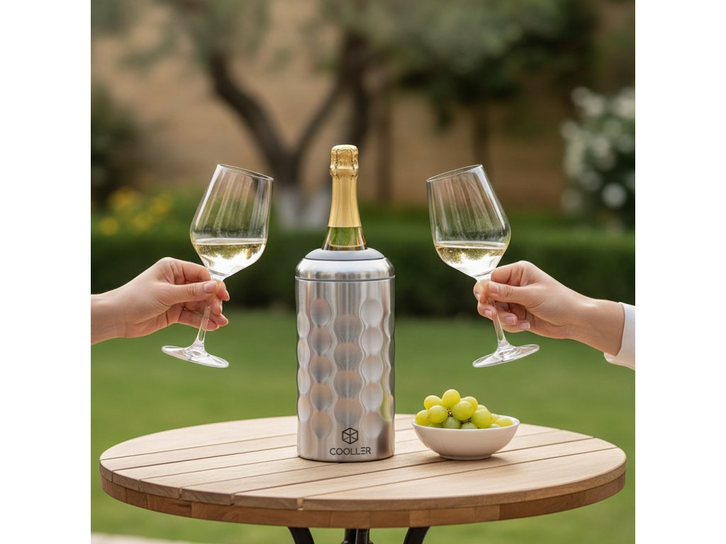 Bez kondenzace – žádné kapání, žádné mokré ruce ani stůl. Univerzální použití – ideální na víno, prosecco i sekt, doma, venku i na cestách.