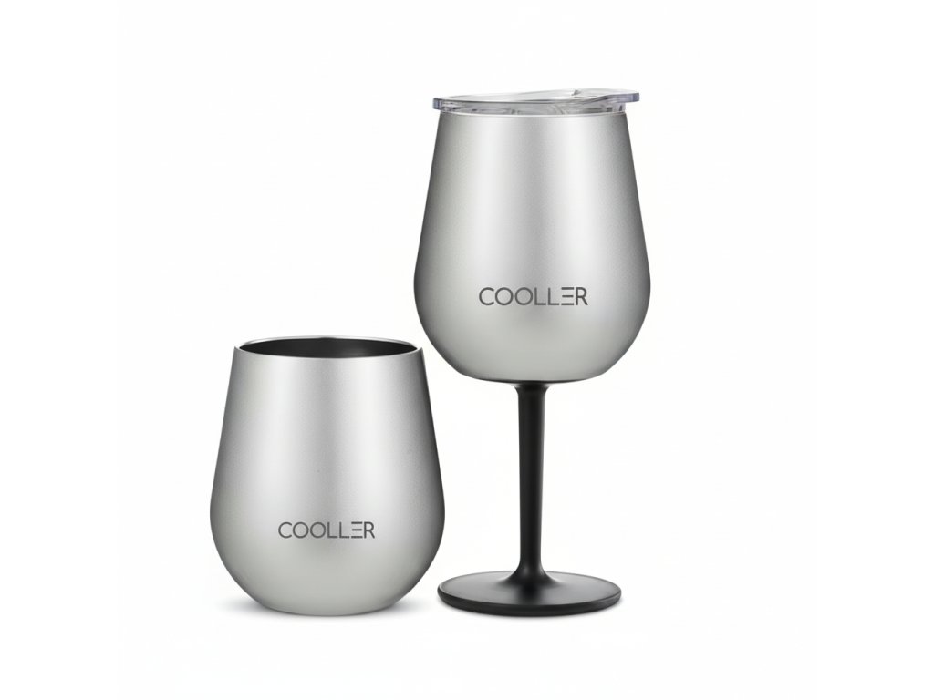 Elegantní set obsahující nerezový termoobal na víno a dvě nerezové sklenice 2v1 (400 ml). Navrženo pro udržení správné teploty a pohodlné vychutnání vína doma i venku.